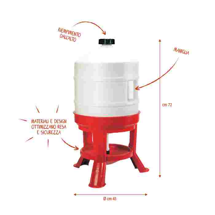 Caracteristici: echipat cu suport ,cu capac de prevenire a murdăriei, ușor de curățat. Speciala pentru toate categoriile de pasari adulte. Cu acest tip de Hranitoare uiti de grija furajari pasarilor,datorita capacitati mari a buncarului,foarte usor de alimentat,igenic pastrand calitatea furajelor,datorita capacului ofera protectie furajului impotriva ploilor.